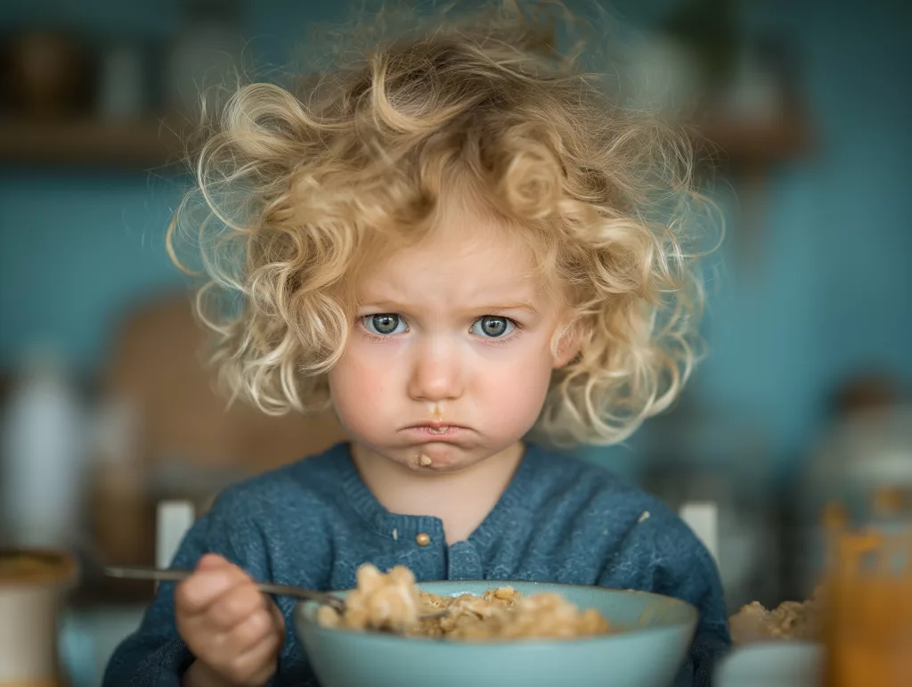 Les textures alimentaires posent particulièrement problème : les aliments mous type purée, les textures mixtes comme les yaourts aux fruits, ou les consistances filandreuses déclenchent fréquemment des réactions de rejet intense.