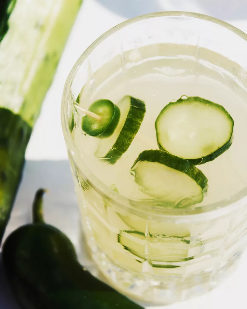 Et si tu es team boisson fraîche, alors mixe-le avec de la menthe, du citron, un peu de gingembre et de l’eau : tu obtiens une eau detox maison ou un smoothie ultra léger. Il peut même être mixé avec un peu de pomme verte pour une version douce et acidulée.