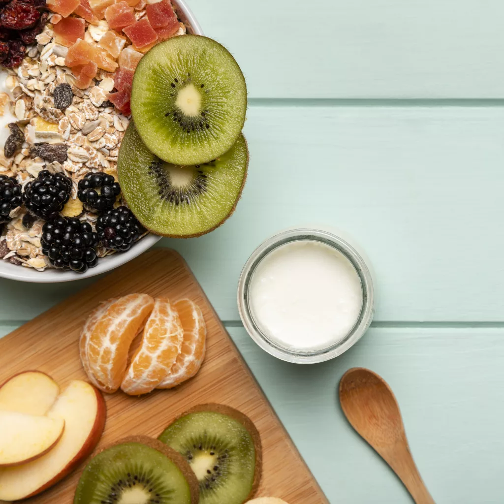 - Probiotiques : aliments fermentés (kéfir, choucroute crue, kimchi, miso) → apportent des bactéries vivantes bénéfiques.